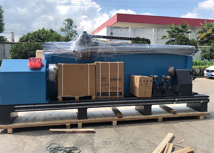 Locating Method of The Workpiece: Self-centering chuck in the left clamp the workpiece to locate the center of rotation by manual. Two supporting racks locate the center of the workpiece and rotate together with the workpiece coaxially. Pneumatic tailstock is equipped in the right end, the centre of the tailstock sustain the workpiece gyration.